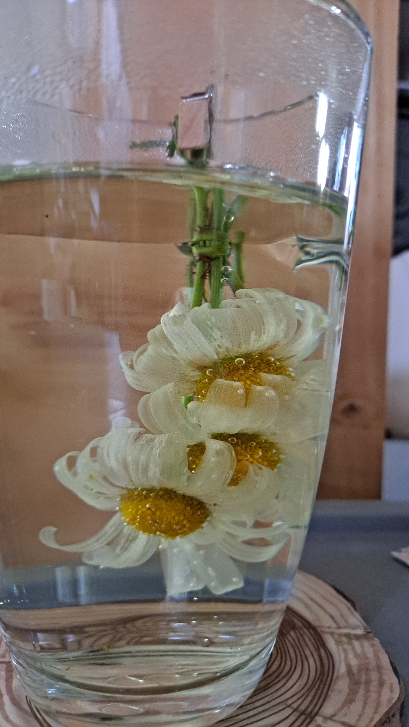 2.깨끗한 물을 받아놓고 그위에 꽃을 넣어 조심스레 헹구어냅니다.