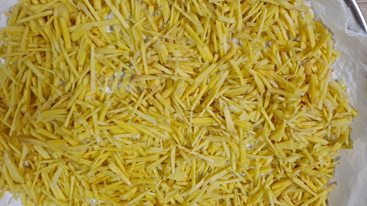 2.생강을 채반에 건져 물기를 빼고 편썰기한후 얇게 채썰기 했습니다..